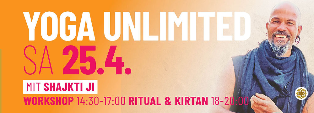 YOGA UNLIMITED – Feiere Dein Leben! Sa 25.4. 14:30-17:00 mit Special Guest SHAKTI JI (München/Portugal) Yoga unlimited ist für alle Levels geeignet! Dich erwartet eine freie, dynamische, liebevolle Raja-Yoga Session, eine Praxis die sich wundervoll ins tägliche Leben integrieren lässt. Erlebe durch Asanas, Pranayamas, Mudras, Bandhas, Meditationen und Affirmationen mit Humor deine eigenen Stärken, Grenzen und Potentiale. Für mehr Bewusstsein, Inspiration und inneres Wachstum bis weit über die Yogamatte hinaus. Shakti Ji Shakti ist Vater von fünf Kindern, Mentor, Autor, Visionär, Numerologe, Friedensarbeiter. Als Wegbereiter für ein ganzheitliches, bewusstes Leben setzt er sich aktiv für die Förderung eines freien, spirituell fundierten Yoga-Verständnisses ein. Mit tiefer Hingabe wirkt Shakti als ganzheitlicher Yogalehrer, Ausbilder und Gründer des Namasté Yoga und ist eine feste Größe in der spirituellen Festival-Szene. Sein Wirken ist geprägt von Lebensfreude, Intuition, Humor, und einer klaren, liebevollen Präsenz. >>> mehr über Shakti: www.shaktiji.de Beitrag: normal 35,- nur für Member-Abo-Mitglieder 27,- >>> anschließend RITUAL & KIRTAN mit Shakti (freiwillige Spende)